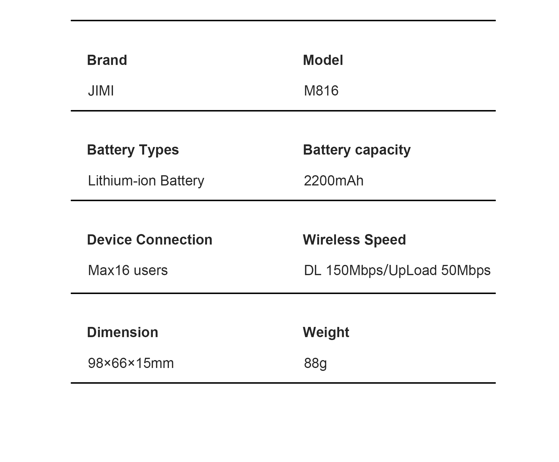 | Downlink | 150Mbps |