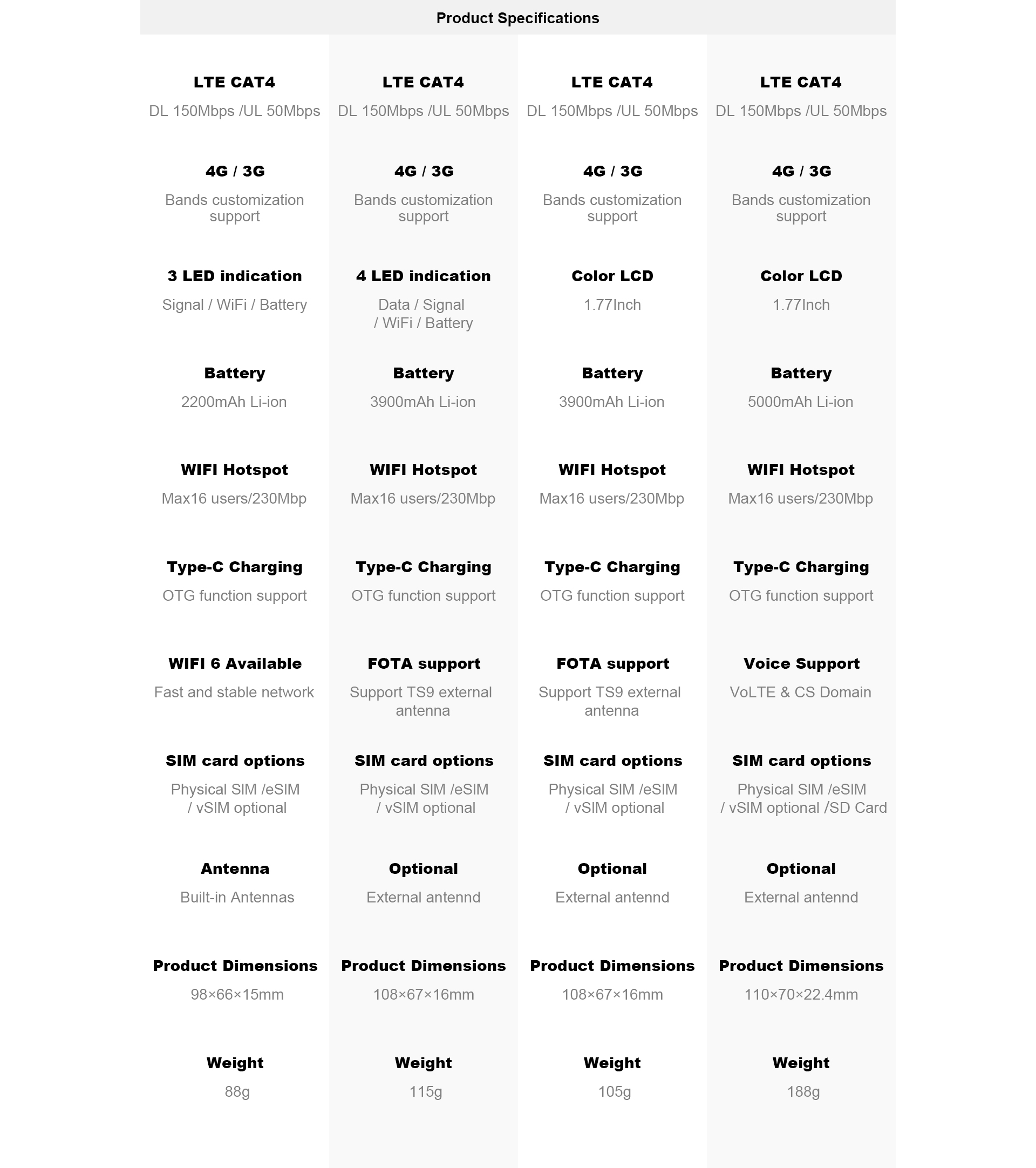 | LED Indication | Singal, Battery, SMS, WIFI |